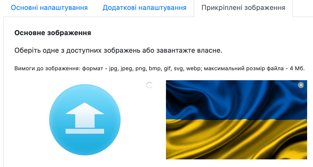 Увага! В якості картинки за замовченням використовується зображення із прапором України. Щоб додати власне зображення або замінити вже додане, вам необхідно натиснути на відповідний блок.