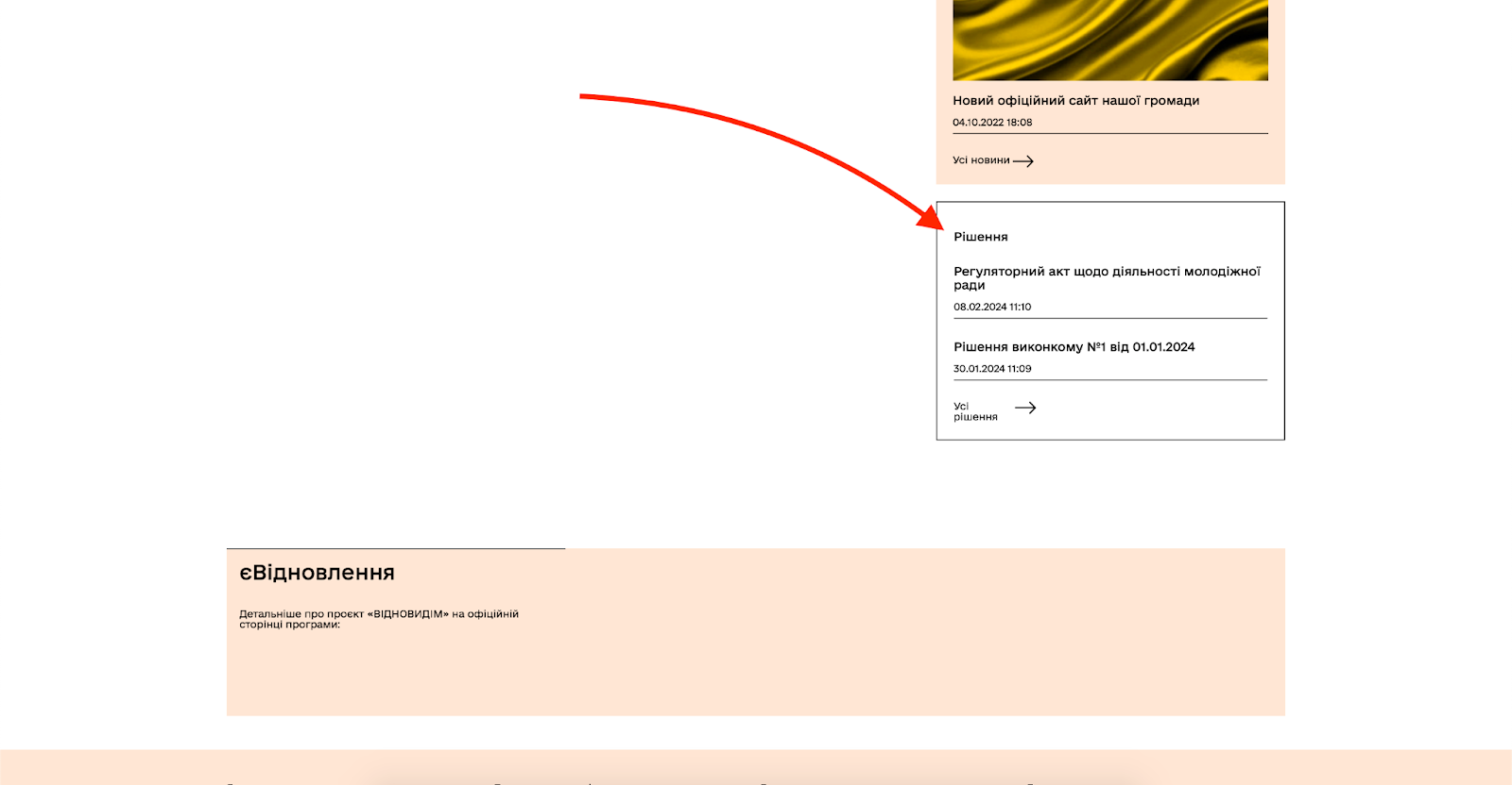 “Додати на сторінку блок з останніми нормативно-правовими актами” – додає на внутрішню сторінку блоку “Новини” в рамках якого відображається 3 останні новини із зазначеним тегом