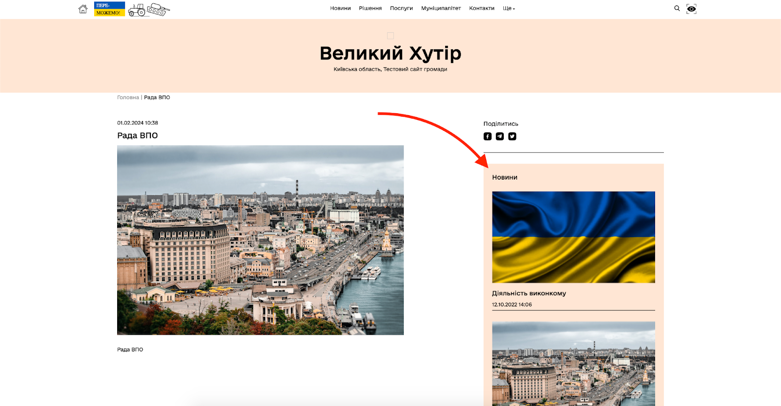 Використовуючи розділ “Сторінки” локальний адміністратор громади може створювати та редагувати власні внутрішні сторінки сайту громади.